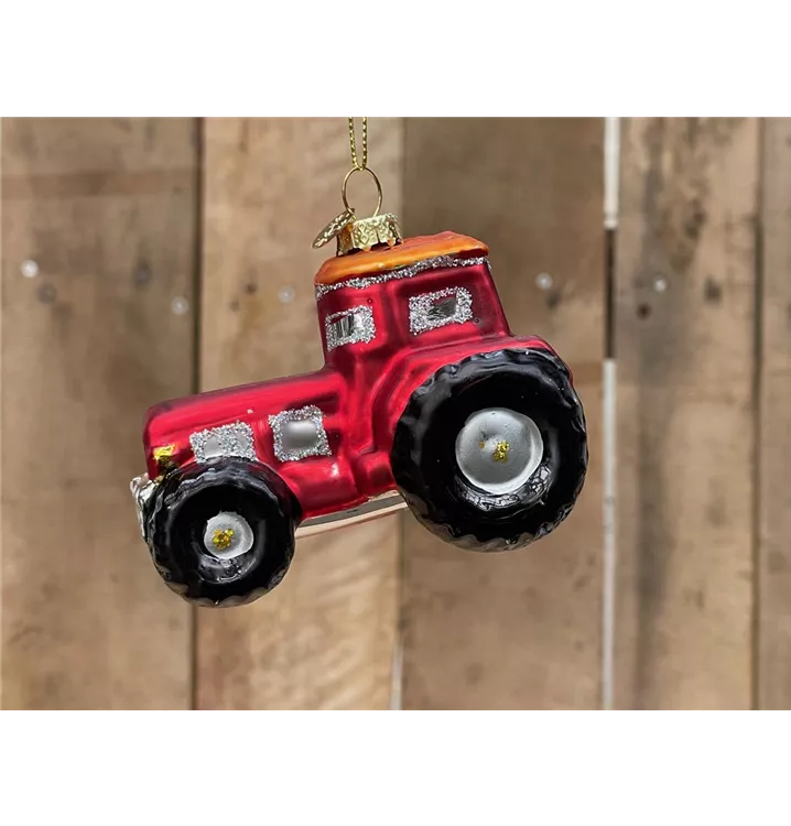 Weihnachtskugel Traktor aus Glas 9 cm