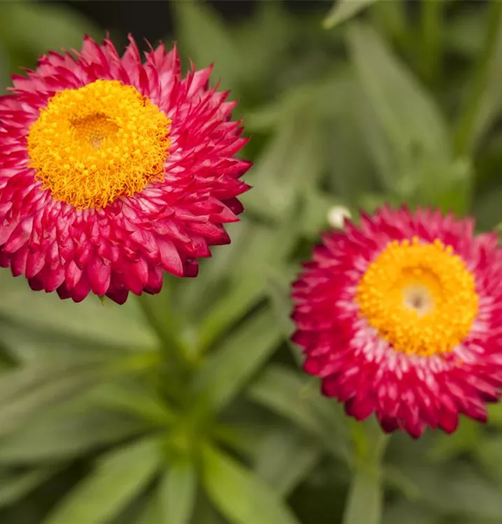 Die Strohblume verzaubert durch ihre zahlreichen magentafarbenen Blüten, die die ganze Saison hindurch erscheinen.Die Blüten sind körbchenartig.