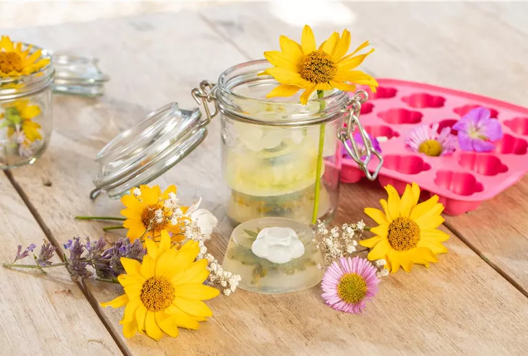 Kosmetik-Artikel eignen sich immer besonders gut als Geschenk für liebe Menschen. Wenn die dann auch noch selbst gemacht sind, ist das etwas ganz Besonderes. Blumenseife sieht nicht nur besonders hübsch aus, sie riecht auch noch gut.