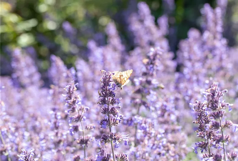 Auch im Bereich der Stauden und Sträucher gibt es Kandidaten, die mit Sonne perfekt zurechtkommen. Wenn es um Pflanzen für sonnige Standorte geht, dann kann man auch mal den Blick heben und ein bisschen in den Himmel schauen. Die beliebtesten Kandidaten bei den Stauden und Sträuchern sind Katzenminze, Steppensalbei und Schmetterlingsflieder. Der Schmetterlingsflieder hat als Pflanze für sonnige Standorte eine ganz besondere Bedeutung, denn er sorgt im Garten für Leben. Seinen Namen hat er nicht umsonst und zieht zur Blütezeit unzählige Schmetterlinge an. Das lässt jedes Gartenfreundeherz höherschlagen, oder? Katzenminze und Steppensalbei haben als Pflanzen für sonnige Standorte den Vorteil, dass ihre Blüten in der Sonne einen einmaligen Duft verströmen. Je wärmer die Sonne auf die Blüten scheint, desto intensiver ist der Duft. Und den riechen nicht nur wir, auch viele Insekten freuen sich über die Blüten. Im Sommer werden die Pflanzen daher gerne von Biene, Hummel und Co. angeflogen und bieten eine ausreichende Nahrungsquelle. Unter den Kletterpflanzen sind Kletterhortensien und die Trompetenblume die perfekten Pflanzen für sonnige Standorte.